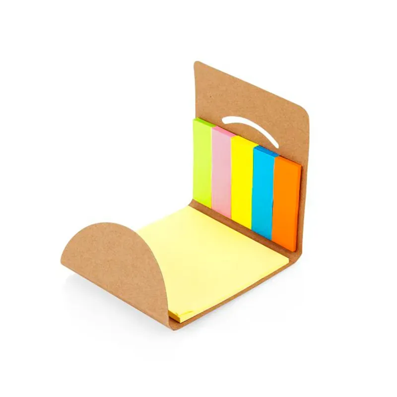 Set de notas adhesivas en formato compacto. Hecho de papel en color natural. Cuenta con notas adhesivas de colores presentadas en un estuche con tapa. Es ideal para marcar páginas, tomar notas rápidas o destacar información importante en estudios y trabajos. TAHG